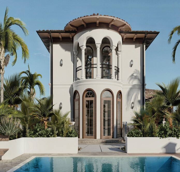 На каждом участке – готовый дом, открытый подогреваемый бассейн, паркинг, продуманное благоустройство и озеленение территории.
